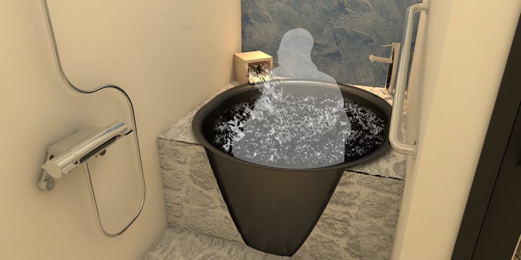 冷たさがやわらかく伝わり、まろやかな水加減が肌にやさしい、日本国内で唯一の鋳物の五右衛門風呂。チラー温度は、冷た過ぎず、身体に優しい自然温度にて提供される。