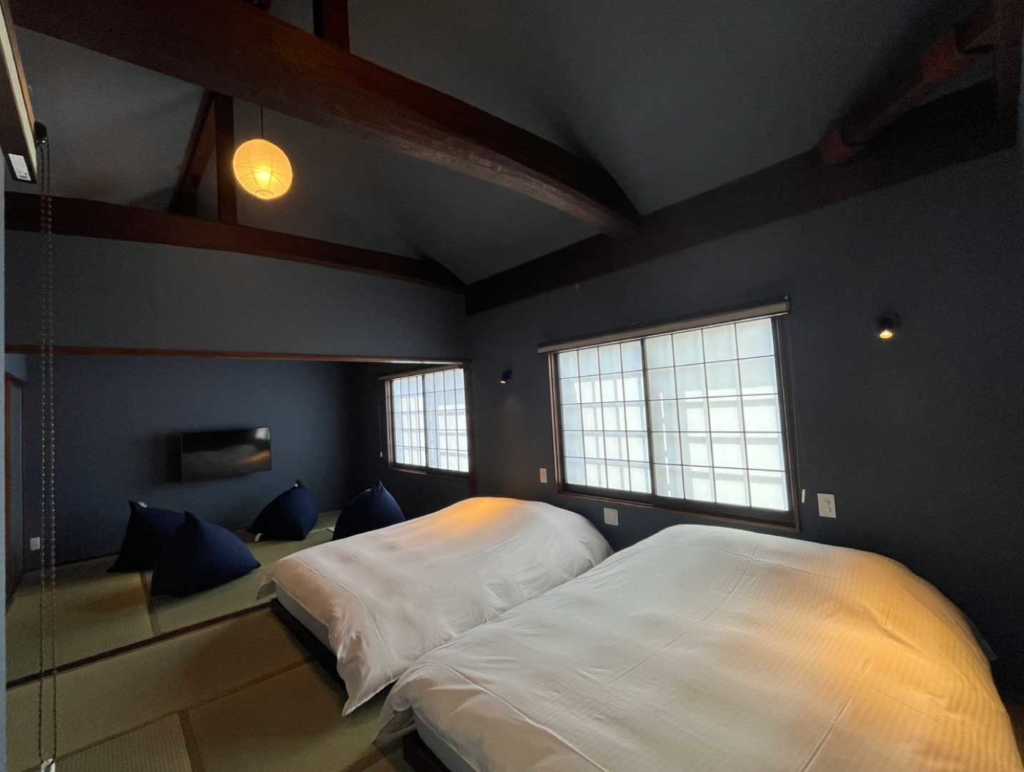 「海南」は最大8名まで滞在可能で、旅の疲れを癒やすサウナ設備のほか、モダンなバスルームも完備。古民家の良さを残しつつ現代的な快適さを提供するという三崎宿のコンセプトを踏襲した施設となっている。