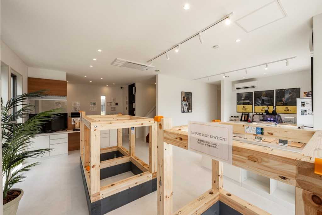 CLEVERLYSTUDIOは、1階の「体験ゾーン」と2階の「ブランド理解ゾーン」で構成されており、サウナ体感ブース以外にも多彩な体験型展示を用意している。構造・断熱・タイルの実験模型では、強さ・快適性・美しさを支える住宅の基本性能を、押して揺らす・持ち比べる・水や火を使って試すといった体験で可視化している。