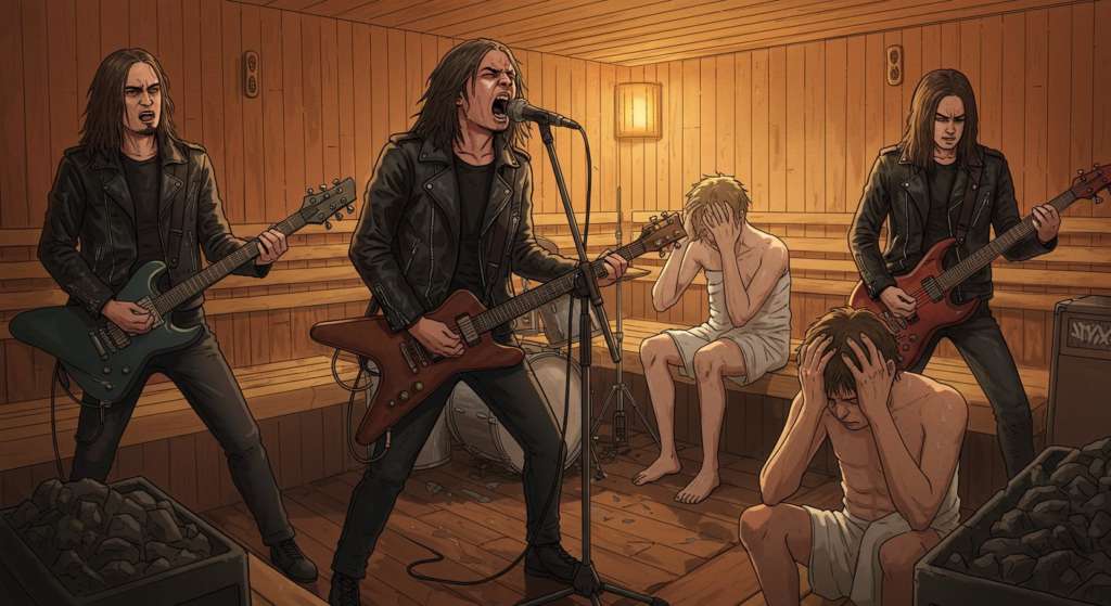 これは、デスメタルのような直接的な暴力ではなく、精神的なじわじわとした侵食による「ととのいの無限ループ化」という、ある意味最も恐ろしい破壊現象と言えるでしょう。気づけば、あなたはサウナ室の隅で、無限の波の音に耳を傾けながら、永遠にととのい続けている……。そんな状態に陥ってしまうかもしれません。