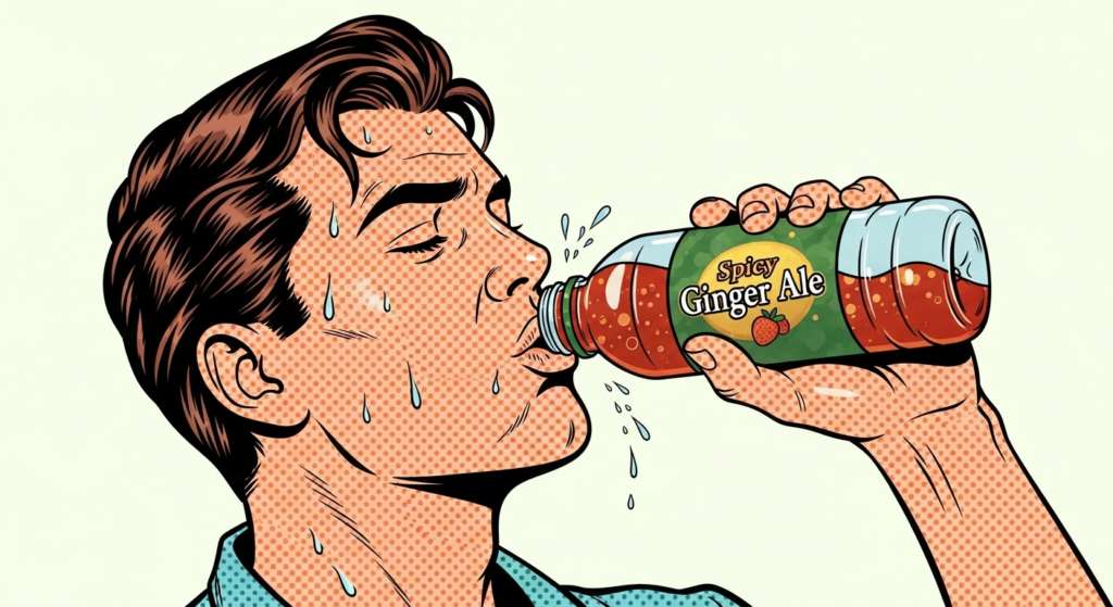 サウナ室に到着。入口前でめっちゃ辛いジンジャーエールを流し込む。喉がカッと熱くなり、胃のあたりからポカポカと温かくなるのを感じる。すでに発汗が始まっているような錯覚に陥る。
