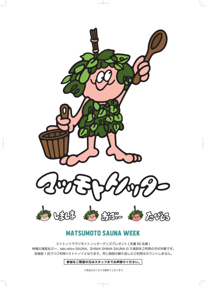 プロジェクトの公式キャラクターとして、新たに「マツモトントゥ」が誕生した。この愛らしいキャラクターは、3つのサウナ施設の守り神をイメージしており、頭には松本産のヴィヒタを被せている。今後はグッズ展開も予定されており、サウナファンの間で注目を集めそうだ。