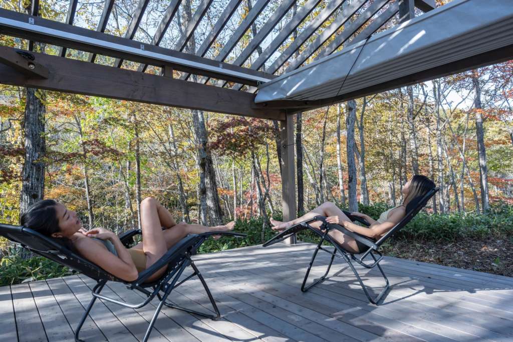 サウナ後の水風呂には、施設の目の前を流れるヌビナイ川を利用。日高山脈の雪解け水を源とする清流は、夏でも冷たく、最高の「ととのい」体験をもたらすという。サウナ室から一歩出ると、原生林に囲まれた外気浴スペースが広がり、木々のざわめきや川のせせらぎを聞きながら、大自然の中で心身ともにリフレッシュできる環境が整っている。