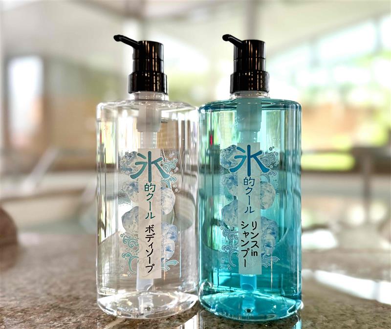 8月9日から31日まで、男性浴室と女性浴室にメントール・ハッカ油(整肌成分)、ヒアルロン酸(保湿成分)を配合した「ひんやりシャンプー&ボディソープ」を設置する。清涼感を感じる使い心地と爽やかなミントの香りで、サウナ後のクールダウンが格別なものになる。