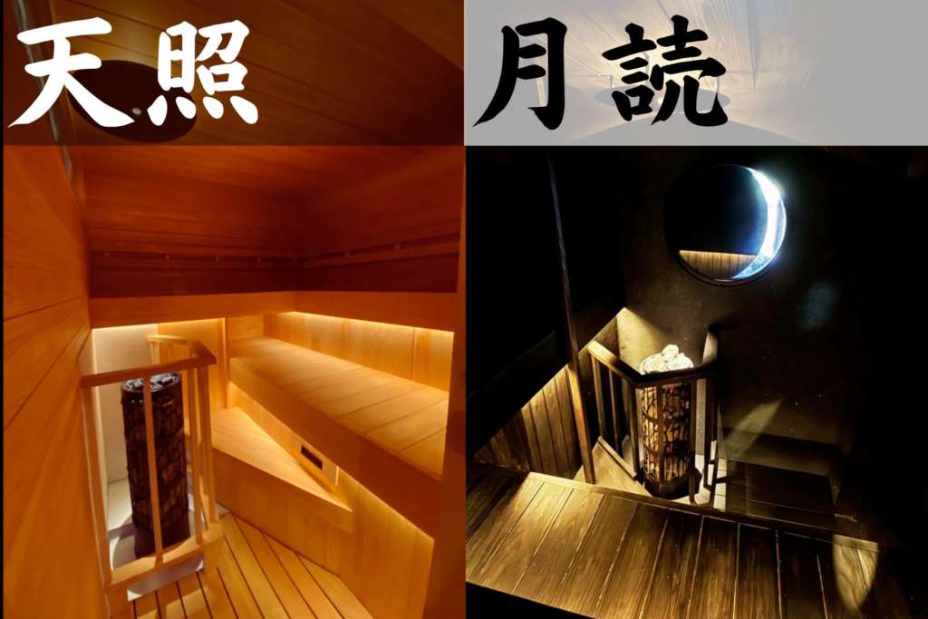 施設には2種類の個性的なサウナが設置されている。「天照」は明るく開放的な空間で、最大5名まで利用可能な広々とした設計となっている。一方、「月読」は黒を基調とした落ち着いた雰囲気で、月をモチーフにした窓が特徴的だ。この窓からは三日月や半月のように変化する光の演出を楽しむことができる。