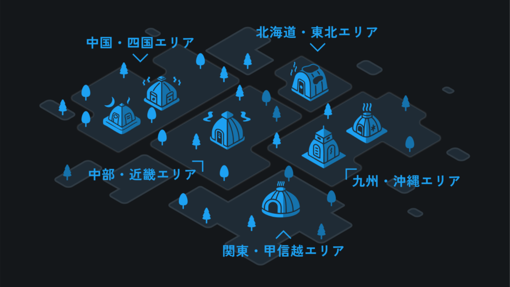 「サ旅万博2025」では、「サウナが日本を訪れる理由になる」をコンセプトに、会場となるアクアイグニス淡路島に5つの「サ旅・地域パビリオン」と称した大型テントサウナを設営する。