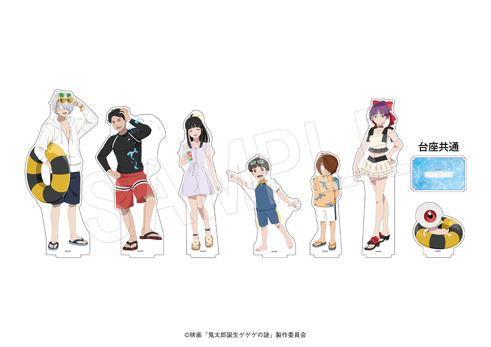 今回のコラボで注目すべきは、鬼太郎の父や水木など7人のキャラクターが水着姿でプールを楽しむ様子を描いた描き下ろしイラスト。このイラストを使用したアクリルフィギュアスタンドをはじめ、普段使いにも便利なスパバッグなど、多数のコラボアイテムが登場する。