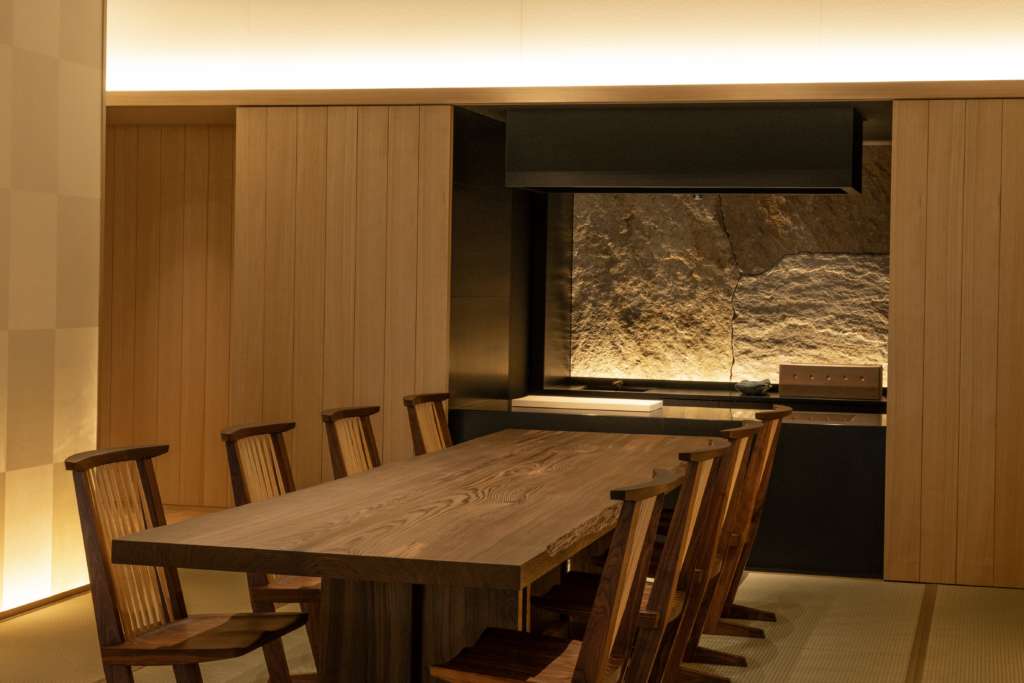 254㎡の室内には、サウナ以外にも強羅花壇のこだわりが詰まった特別な設備が揃う。専属料理人が厳選した旬の食材を使用し、懐石料理を目の前で一皿ずつ丁寧に仕上げるシェフズキッチンを完備。豊かな箱根山の養分を受けて育った野菜や駿河湾の海の幸を、音や香りと共に味わえる。
