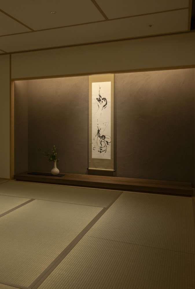 8畳のシンプルなデザインの和室も設置されており、日本人の琴線に触れる心安らぐ空間となっている。一服の茶をいただく余白の時間が、日本の美意識を再確認し、サウナで整えた心をさらに静めて精神を整えるひとときをもたらす。