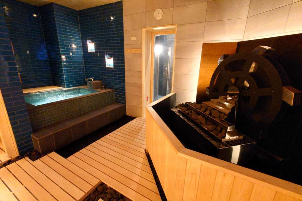 こちらは会話が許された、エンターテインメントの殿堂だ。サウナ室にそびえ立つ65型の大型テレビは、スポーツ観戦からお笑い番組まで、サウナを楽しみ尽くすための最高の贈り物。熱波を浴びながら、仲間と勝利の雄叫びをあげる。あるいは、熱波師が繰り出すアウフグースに歓声を上げる。まるで、サウナ室内が一体となったスタジアムのようだ。
