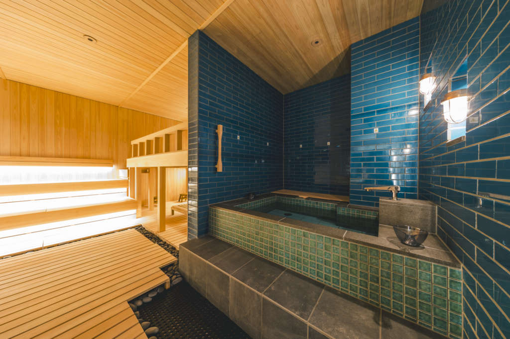 水温10℃未満のシングル仕様で、水深1.37mの深め設計の水風呂「クロスカウンター」は、日本初の四方ジェット+頭上冷水システムを導入。ボタンを押すと四方からジェットが噴出し、さらに頭上から毎分250Lの冷水が降り注ぐ、未体験の爽快感を味わえる。水深1.37mで潜水も可能だ。