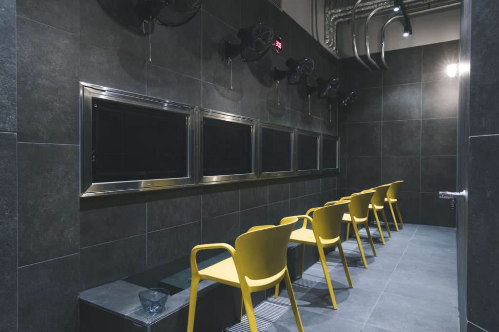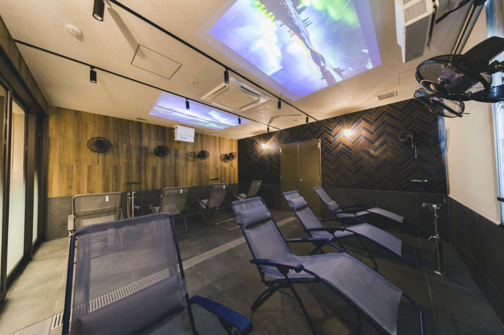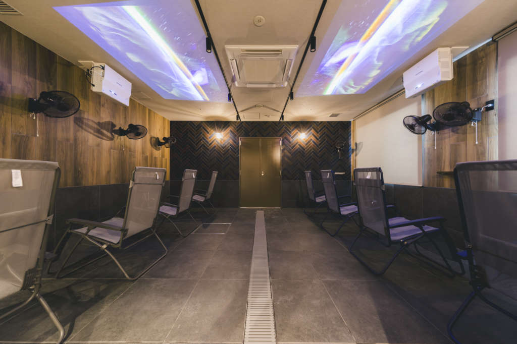 フランスの老舗アウトドアブランド「ラフマ社」のリクライニングチェアを設置し、天井に映し出される幻想的なオーロラ映像とともに、極上の休憩時間を楽しめる。一人一台の扇風機も完備し、五感で癒される空間を提供している。