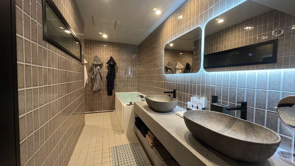 だからホテルのサウナは温度調整ができて、セルフロウリュで自分のペースで楽しめる。オートロウリュやブロワーからの熱風が突然ドカーン!と来る恐怖もない。音楽をBluetoothで流せるし、明るさも調整できる。20種類のアロマから好きな香りを選んで楽しめる。さらに水風呂も自分専用だから、冷たすぎたらお湯を足せばいいし、ぬるくなったら追い水でまた冷やせばいい。