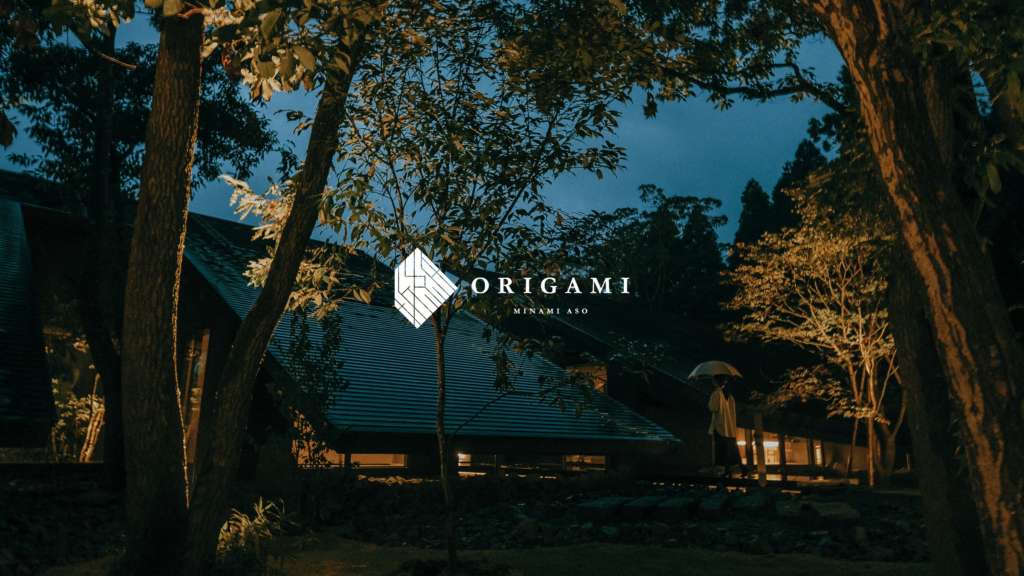 南阿蘇のカルデラに佇むORIGAMI MINAMIASOは、自然の景観と建築が一体となった空間だ。建物の屋根やフォルムはカルデラの山並みを折り重ねるようにデザインされており、大きな窓からはどの景色もまるで室内に取り込まれた借景のように感じられる。