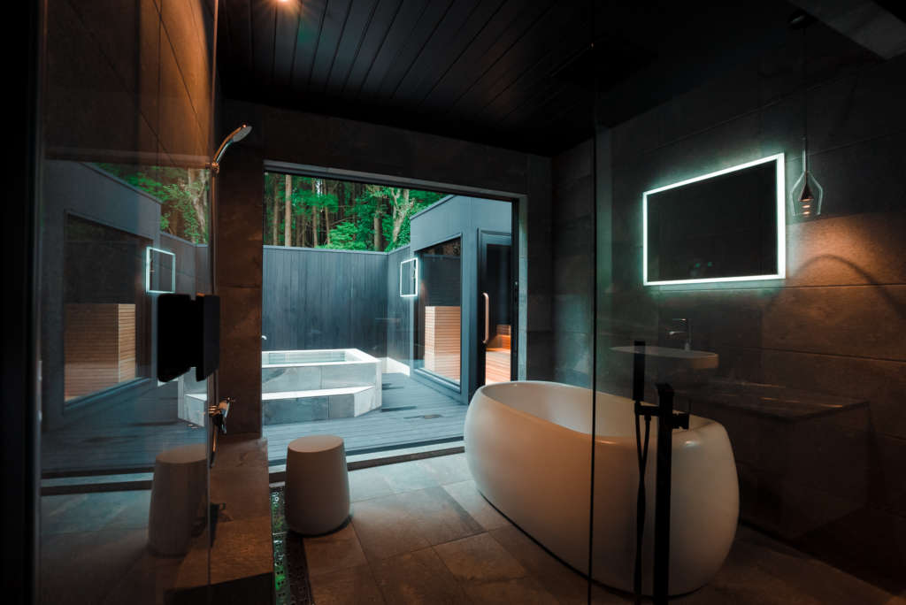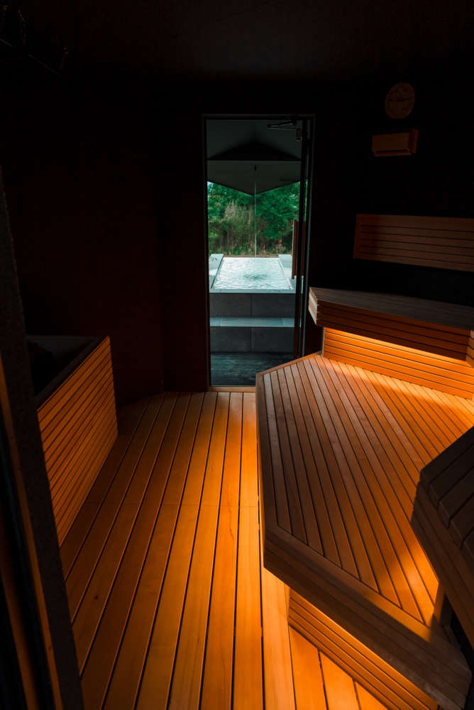 サウナと水風呂は、どちらもカルデラの景色を存分に感じられる開放的な空間設計となっている。温まりながら、または冷たい水に身を委ねながら、阿蘇の壮大な自然を眼前に望む──そんな贅沢な体験が待っている。