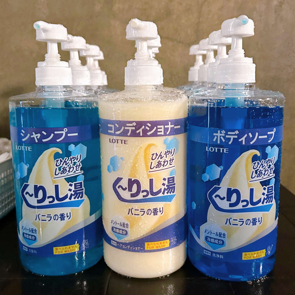 さらにシャワーエリアには、「く〜りっし湯シャンプーセット」を設置。シャンプー、コンディショナー、ボディソープの3種セットで、サウナ前後のケアまでクーリッシュの世界観で楽しめる仕掛けだ。