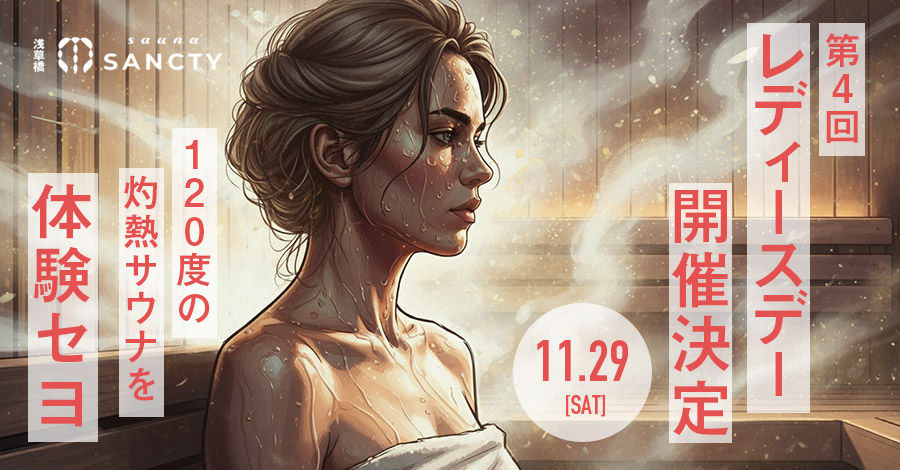 ホーム » 全ての記事 » 浅草橋サウナSANCTYが11月29日に第4回レディースデー開催!120℃超高温サウナと-6℃冷却室で唯一無二のサウナ体験