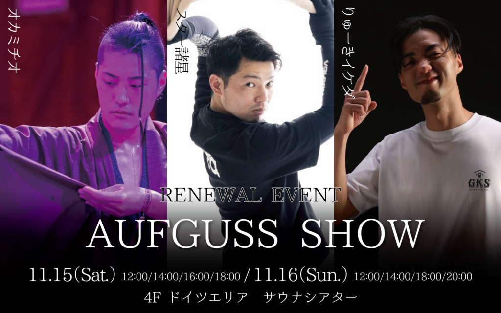 リニューアルオープン日の11月15日と翌16日には、特別イベントを実施。オカミチオ、スター諸星、りゅーきイケダといった人気のアウフグーサーによるアウフグースイベントが行われる。