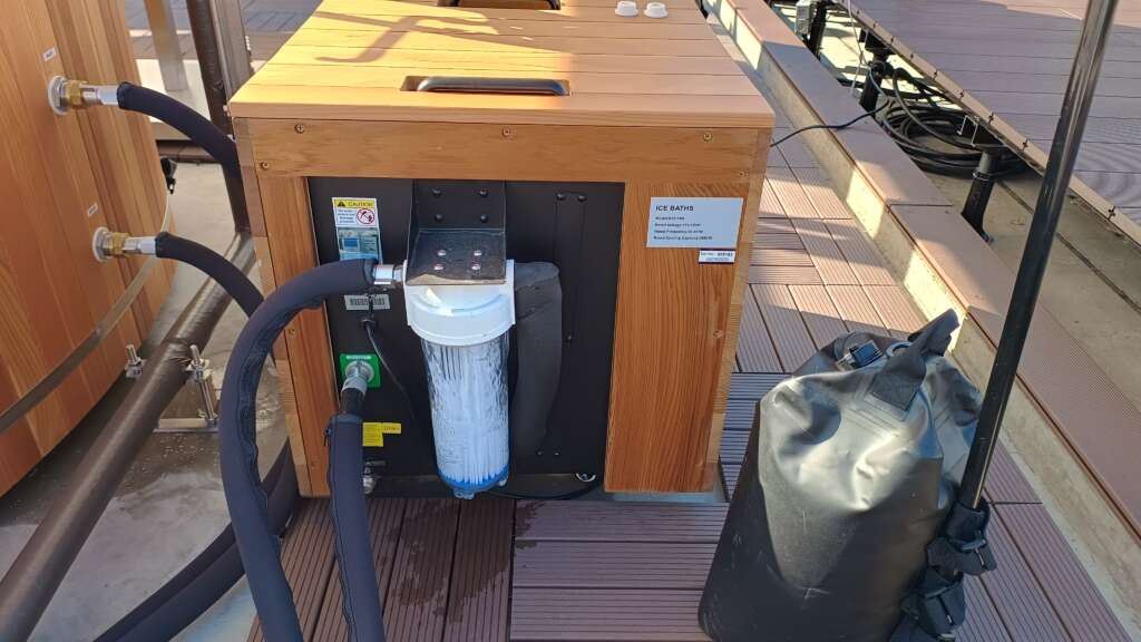 驚くべきことに、この水風呂は10℃未満のシングル水温を安定維持する高性能チラー(冷却装置)搭載モデル。一般の水道水では難しい、あの”キンキン”の冷たさを実現してくれる。しかも、オゾン除菌+ろ過機能付きで、常に清潔でまろやかな水質を保ち、利用者が安心して”ととのい”に集中できる環境を実現している。ちなみに、チラーの稼働は12月後半ごろの予定だ。ただし、サウナの利用は水着着用が必要で、男女共用。中学生以上が利用できるぞ。