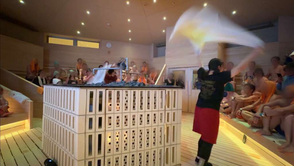 そして、何と言ってもサウナシアターでのアウフグースショーは圧巻だった。参加者の熱気が凄まじい。新施設のポテンシャルが、完全に証明された瞬間である。このショーのためにこのサウナはあるのだ!