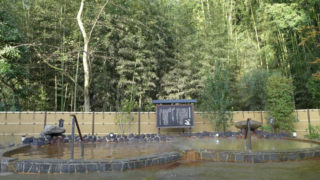 露天風呂では、竹林を眺めながら自家源泉「佐倉染井野温泉」を堪能できる。