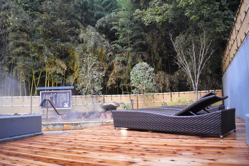 竹林を眺める外気浴スペース