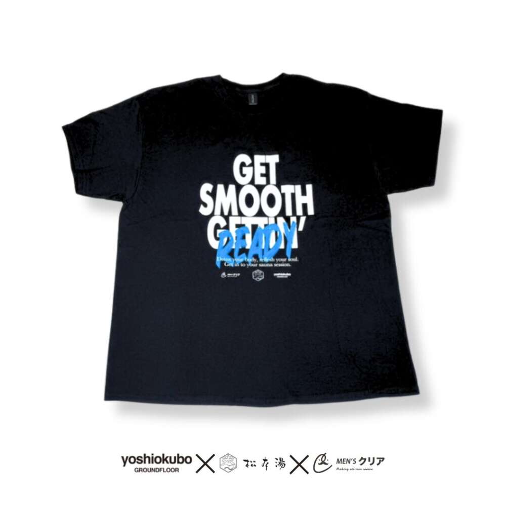 厚地のコットンボディに「肌を滑らかに、整う」を意味する「Get Smooth Gettin’ Ready」のオリジナルプリントを施している。