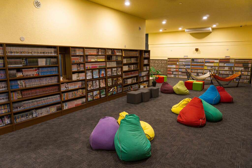 1階と2階それぞれに大型休憩ラウンジがある。1階ではソファやヨギボーに身を委ねながらコミックを読むなど、静かな時間を過ごせる。2階はリクライニングチェアが並び、湯上りの体をゆっくり休められる空間だ。