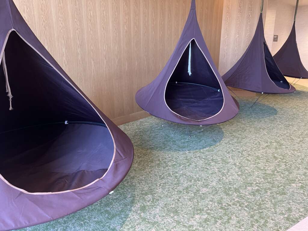 リゾートっぽいハンギングチェアがあったり。ハンモックがあったり。色んな種類の椅子が置いてあります。「どこに座ろうかな~」と迷うのも楽しい。お気に入りの場所を見つけて、マンガを読みながらダラダラする。これぞ至福。