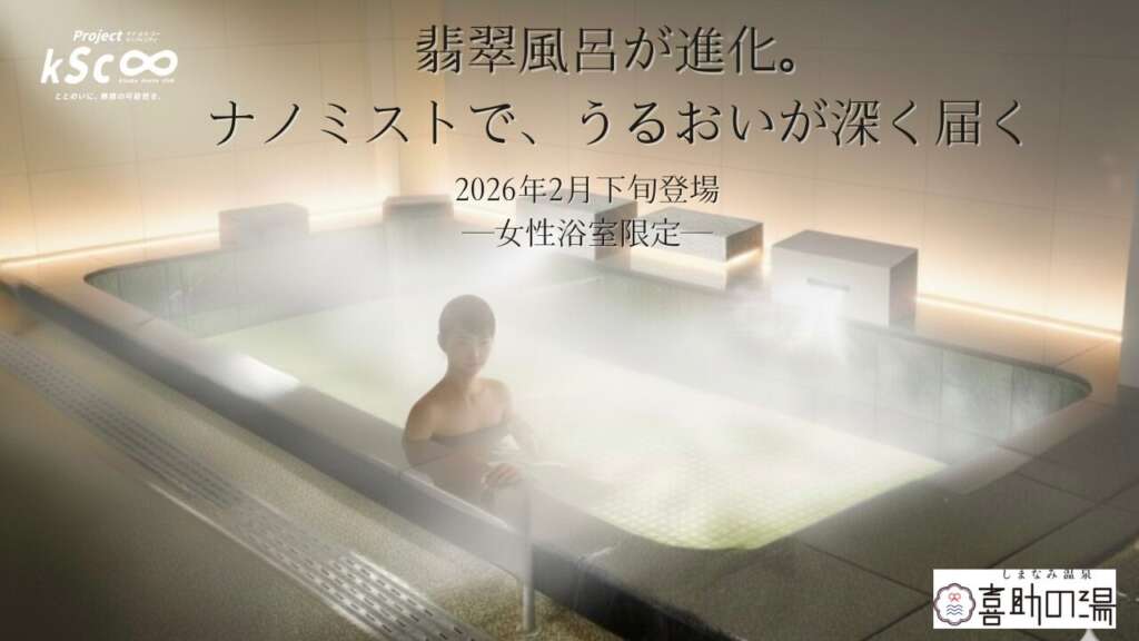 愛媛県「伊予の湯治場 喜助の湯」と「しまなみ温泉 喜助の湯」が、2026年2月より3つのリニューアルプロジェクトを順次始動する。これは「喜助の湯 サウナ・温泉の進化 2026」第1弾だ。