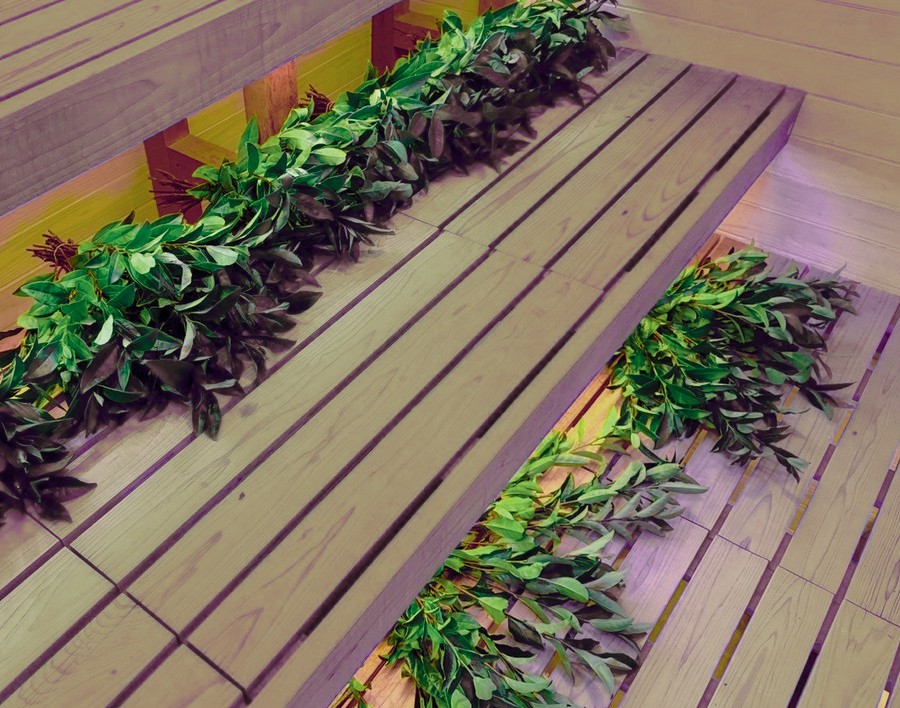 ・お茶ヴィヒタ装飾(お茶の枝12本をサウナ室に設置)