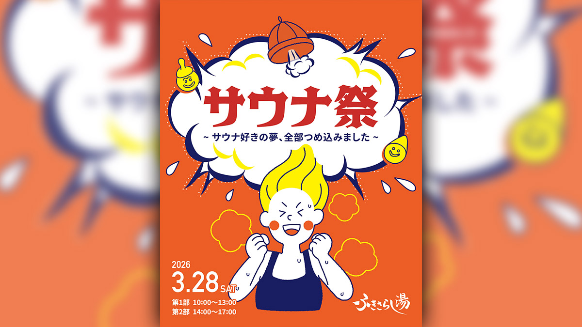 静岡市駿河区丸子にある温浴施設「ふきさらし湯」では、2026年3月28日(土)に貸切型サウナイベント「サウナ祭り~サウナ好きの夢、全部つめ込みました~」を開催する。