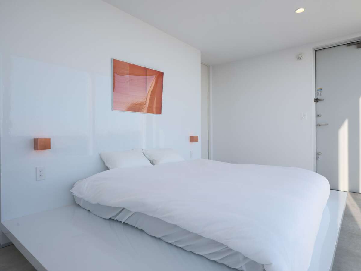 「UMInoTERRACE Garden」は室内の設計にも手が抜かれていない。白で統一された室内に厳選された現代アートとデザイナーズ家具を配置し、「海辺のプライベートギャラリー」のような空間を演出している。全天候型テラスの家具には北欧ブランド「HAY」を採用。アメニティはJohn Masters Organicsで統一し、ドライヤーやヘアアイロンはRefaを備える。
