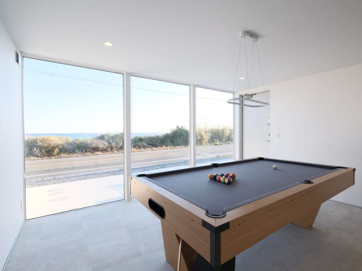 サウナやプール以外のエンターテインメントも充実している。8フィートの本格ビリヤード台を備えた専用プレイルームはオーシャンビュー付き。カラオケはDAMを完備し24時間利用可能。BOSEスピーカーを採用したホームシアターでNetflixやAmazonプライムを大画面で楽しめる。雨天や夜間でも一棟の中だけで完結できる設計は、天候に左右されない安定した体験価値を生む。