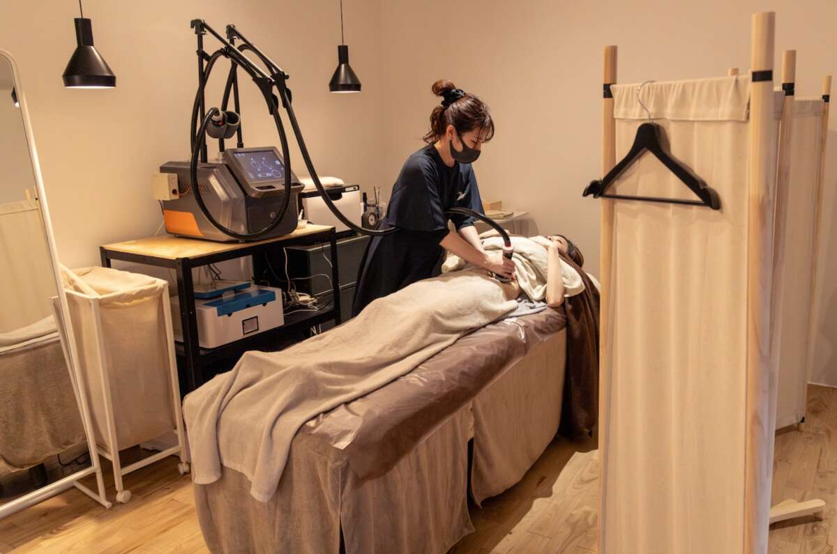 美容マシンはResonance Lift・RABI・REZIOの3種類を導入。スタッフによる施術に加え、セルフ使い放題(時間無制限)という設計で、自分のペースで美容体験を深められる。