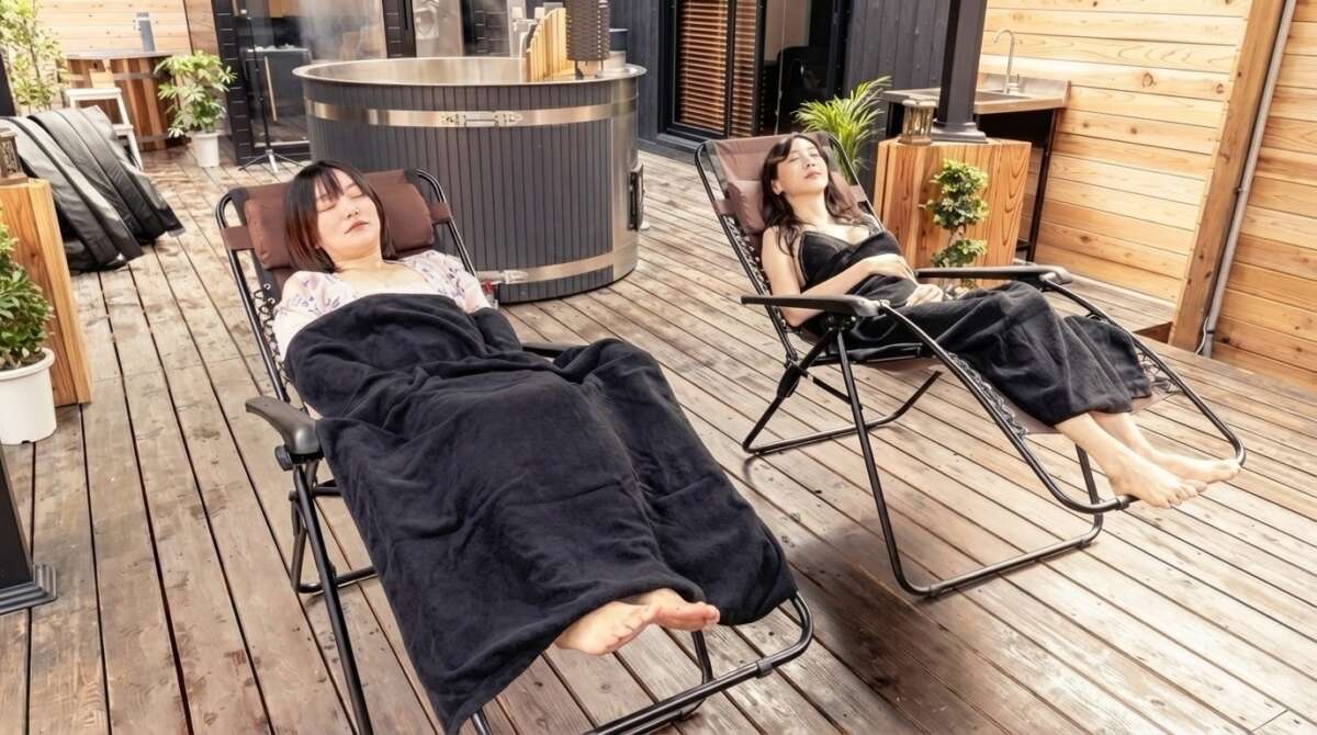 「ととのえてから美容する」という発想、薪サウナ→露天薪風呂→美容マシンの動線