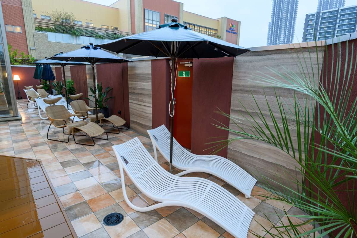 屋外に新設されたアウトドアエリアでは、男女共用で利用できるアウトドアサウナが登場。南国風のプールサイドを思わせる開放的なテラス空間も整備されており、非日常感あふれる屋外体験が可能だ。家族、友人、カップルなど幅広い利用シーンに対応している。