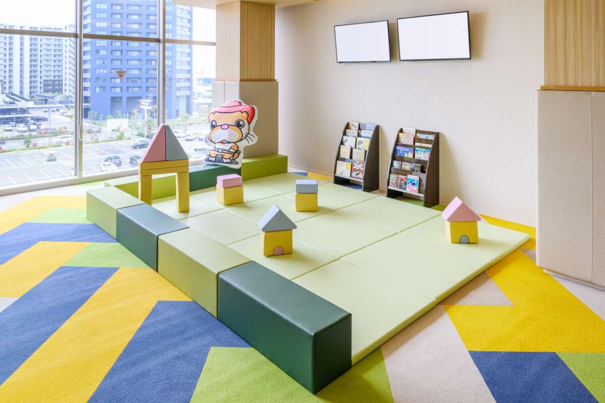 キッズ&ファミリースペース内には、マット・絵本・クッションブロックなどを備えたキッズコーナーを新設。子どもが安心して遊べる環境が整い、ファミリー層がより利用しやすい施設となった。