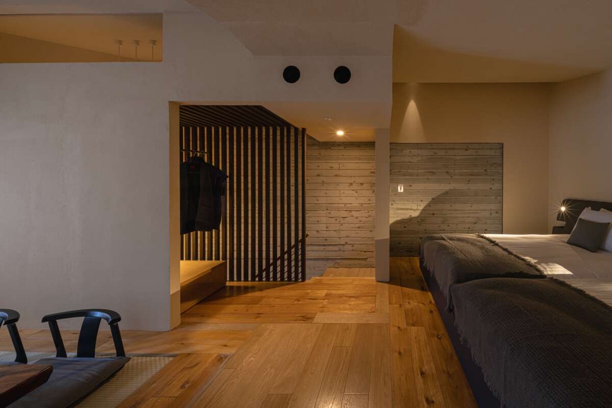 改装を手がけたのは、蔵群の設計者である中山眞琴氏本人。客室にあわせてソファやベッドを新たにデザインし、「閑」をテーマにした和の美意識を保ちながら、現代的な居心地を実現した。