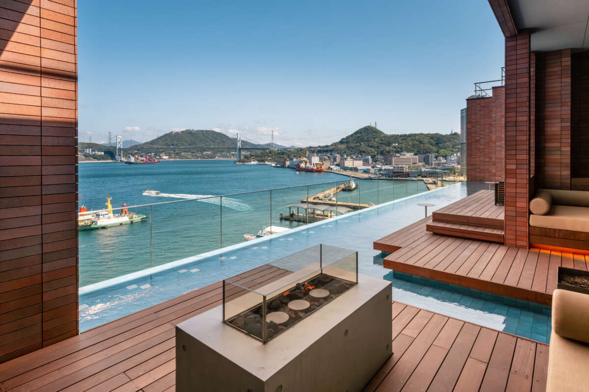 最上階に位置する「半露天大浴場」は、関門海峡とインフィニティデザインの湯船が視覚的につながるレイアウト。夕景から夜景へと変化する海峡の表情を、浸かりながら眺められる構造だ。共用のサウナ設備については、現時点のリリース情報では言及がなく、今後の続報が待たれる。