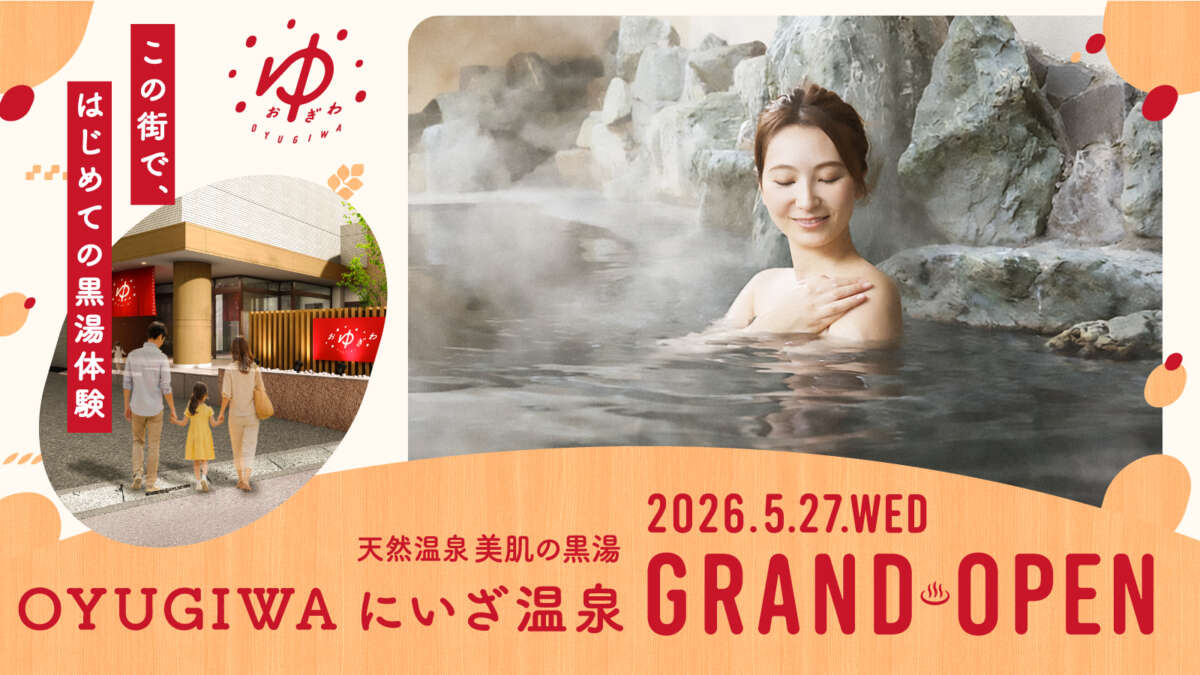 首都圏近郊のサウナシーンに、また一つ注目施設が加わる。株式会社イオンファンタジーが展開する温浴ブランド「OYUGIWA」の3号店、「OYUGIWAにいざ温泉」が2026年5月27日(水)、埼玉県新座市にグランドオープンする。その最大の特徴は、静岡県産茶葉を用いたオートロウリュサウナと、新座の大地が育んだ「黒湯」天然温泉の組み合わせだ。